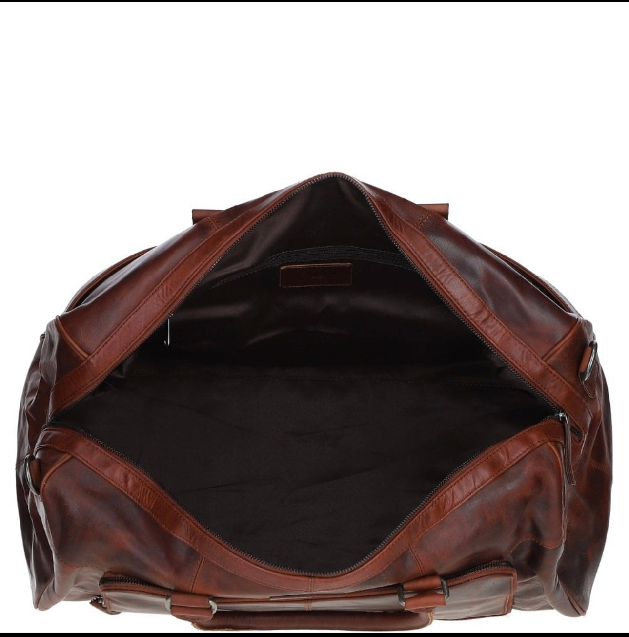 This stylish leather holdall blends sophistication with practicality, making it perfect for travel or everyday use. Crafted from premium leather with gunmetal grey hardware, it features a spacious main compartment, three internal pockets for organised storage, and an outer zip compartment for easy access to essentials. The adjustable shoulder strap and sturdy top handles offer versatile carrying options, ensuring comfort and functionality wherever you go.