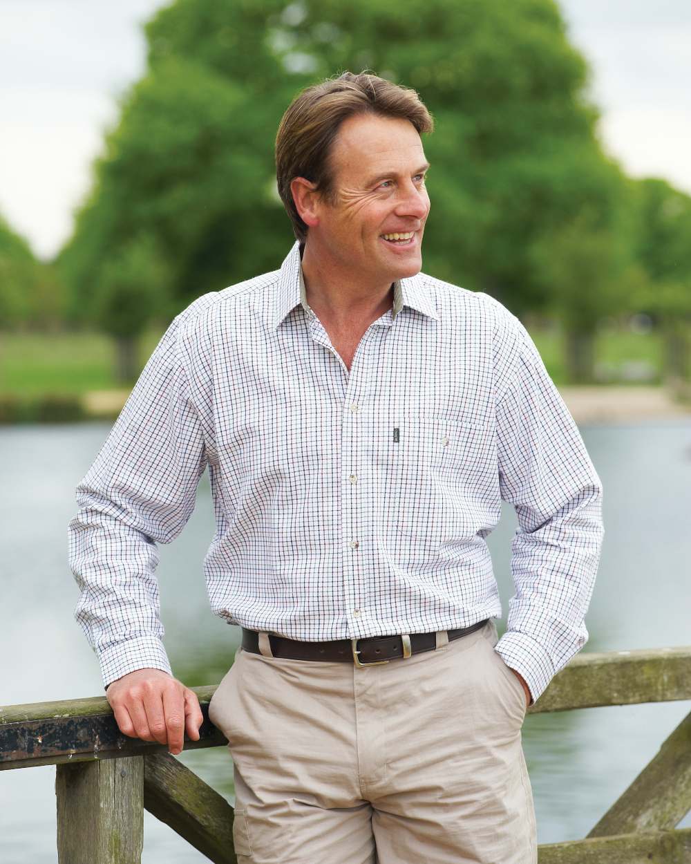 Brook Taverner Regular Fit Navy Small Tattersall Check Cotton Shirt- Green