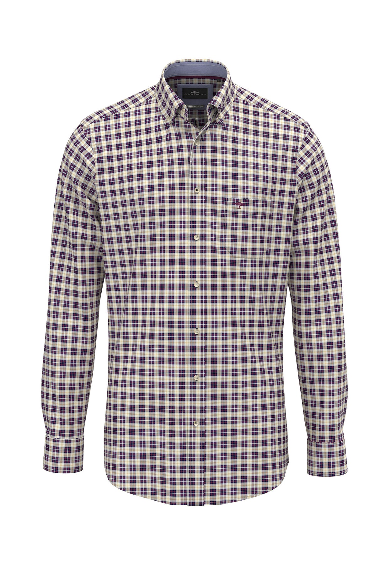 Fynch-Hatton Long Sleeve Oxford Check Deep Merlot