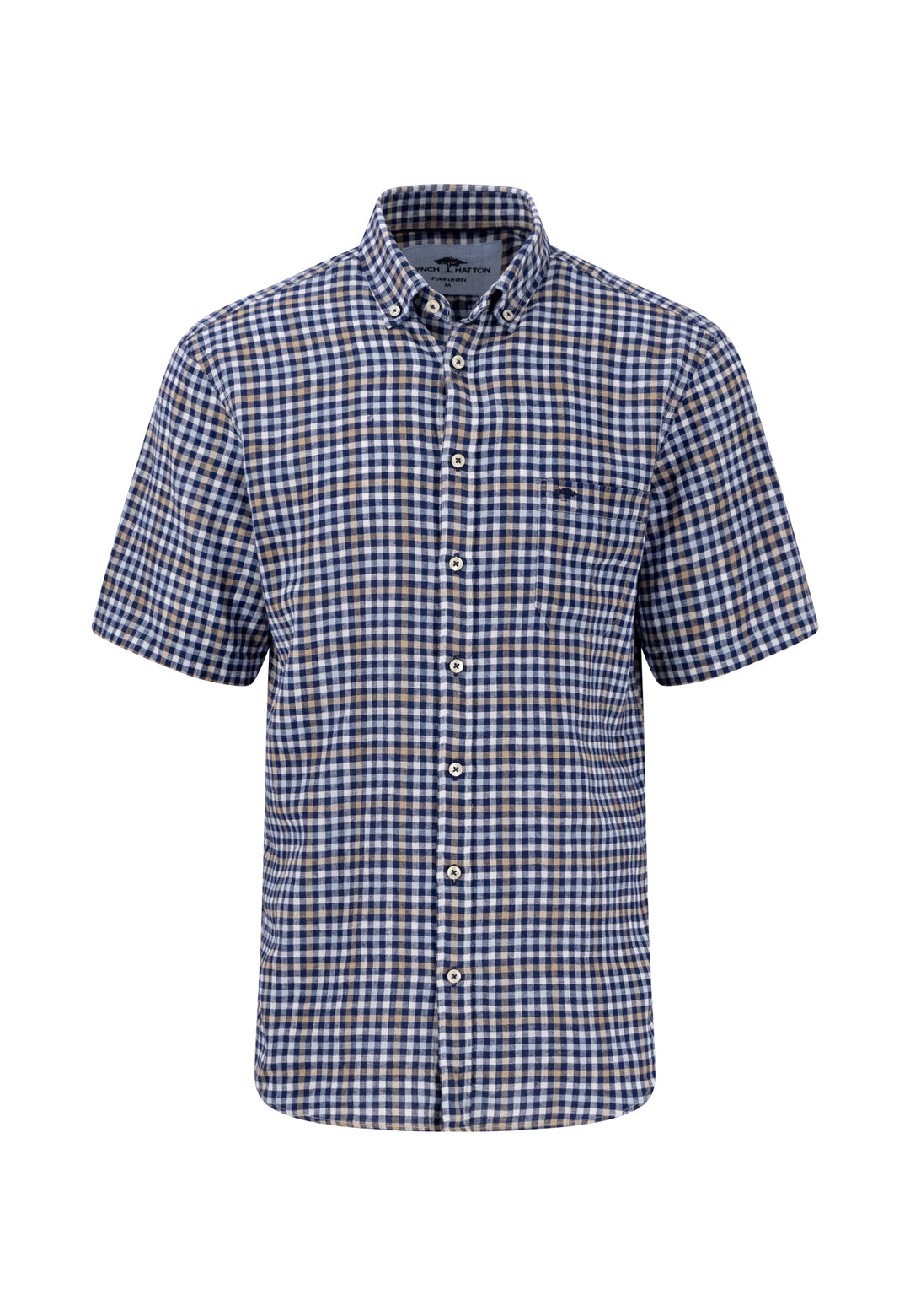 Fynch-Hatton Short Sleeve Linen Check Navy