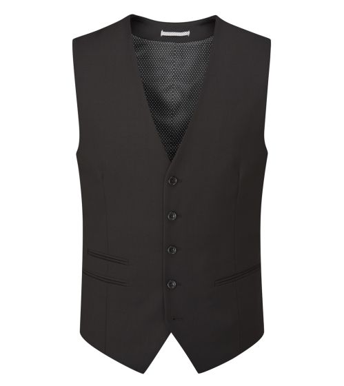 Waistcoat: Single breasted five button waistcoat, straight jetted pockets, jetted ticket pocket with adjustable back strap.